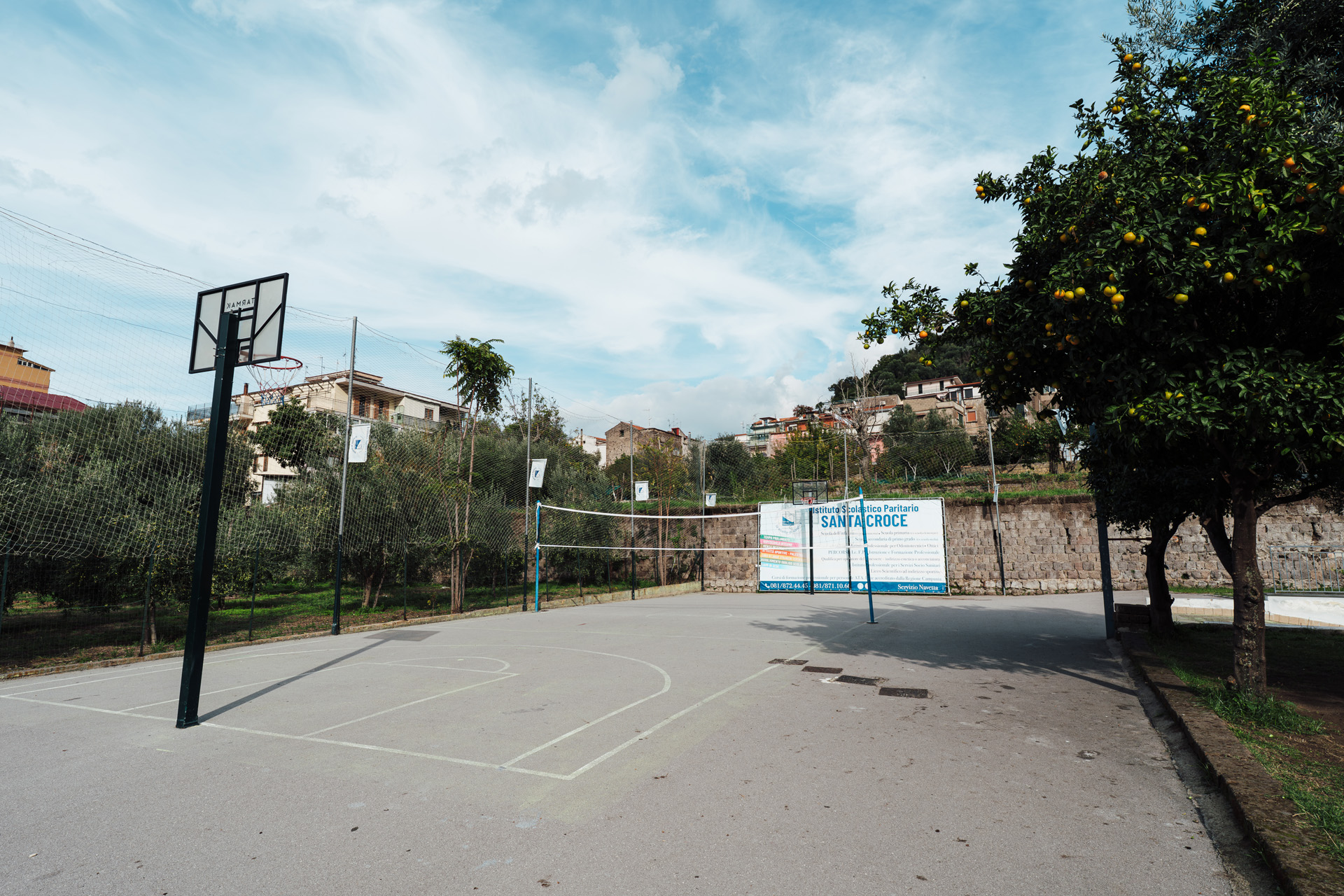 Le aule sono affiancate da una sala computer attrezzata, che consente agli studenti di avvicinarsi alle nuove tecnologie e di sviluppare competenze digitali in modo guidato e consapevole. L’attenzione all’educazione passa anche attraverso il movimento e lo sport: il campo da basket rappresenta uno spazio dedicato all’attività fisica, alla socializzazione e allo sviluppo di valori come il rispetto delle regole e il lavoro di squadra.